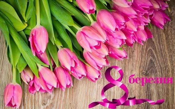 Любі жінки! Щиро і сердечно вітаємо Вас із весняним святом – 8 березня! Нехай кожен Ваш день буде сонячним і радісним, нехай навколо Вас панують любов, гармонія та щастя, а на Вашу честь розквітають квіти та лунає музика. Будьте завжди усміхнені, повні надій та оптимізму. Бажаємо Вам щастя та вдачі, міцного здоров’я, здійснення всіх мрій та бажань. Хай в Ваших оселях завжди панують мир, злагода й добробут.