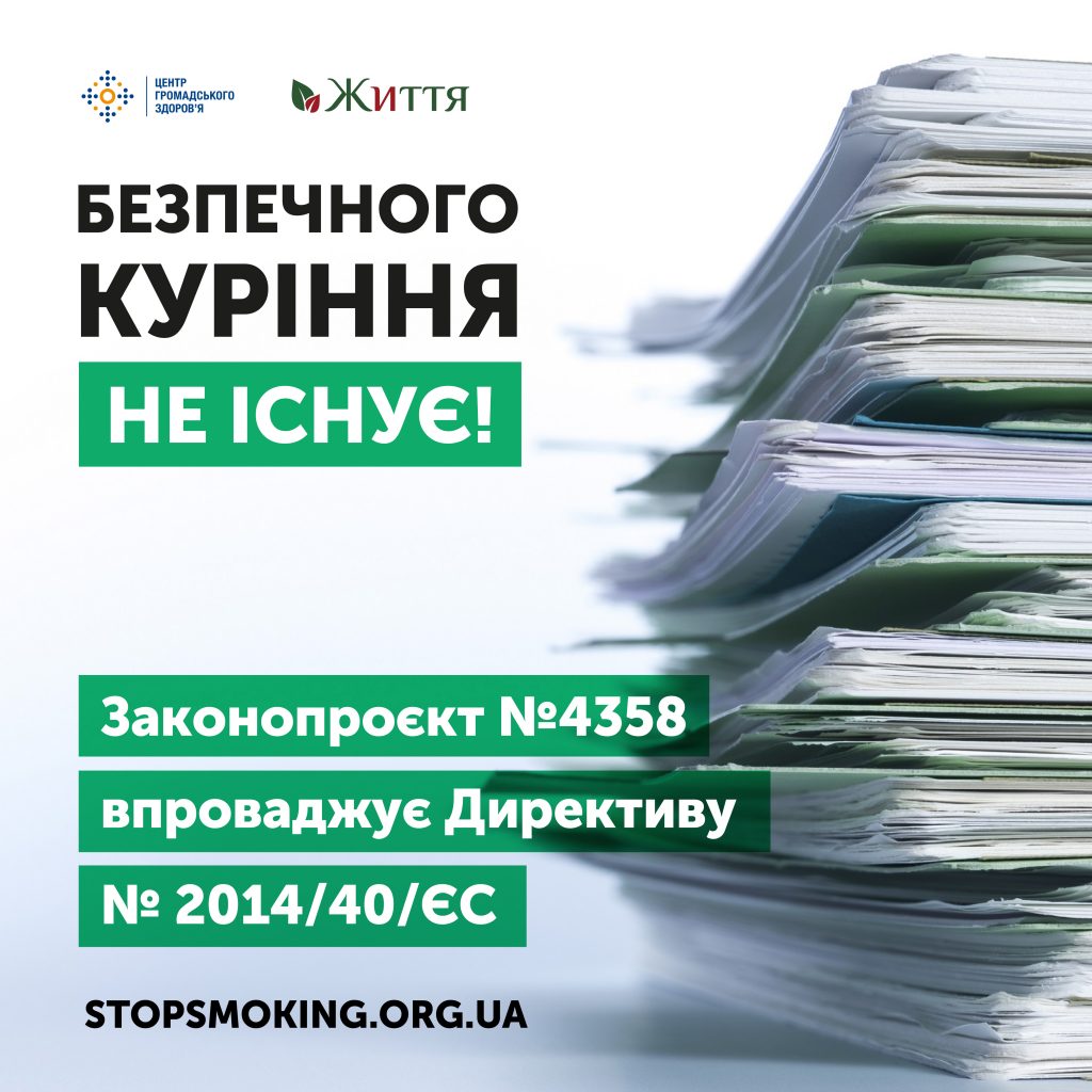 Чинний склад Верховної Ради ухвалив у першому читанні Комплексний антитютюновий законопроєкт №4358. Законопроєкт повністю відповідає Рамковій конвенції ВООЗ із боротьби проти тютюну та імплементує Директиву № 2014/40/ЄС в частині захисту здоров’я.